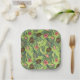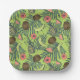 Tropische Fruchtskizze auf grünem Muster Pappteller