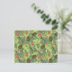 Tropische Fruchtskizze auf grünem Muster Postkarte