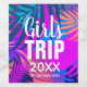 Mädchen reisen schwach... Gedenken Sie Ihre Reise! Farbiger, tropischer Blattmuster-Hintergrund mit weißem, anpassbarem Text.