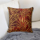 Dieses Kopfkissen mit goldfarbenen tropischen Blätter auf einem bordeauxroten Farbverlauf, der fast zu leuchten scheint. Beide Seiten des Kissens haben das gleiche Muster.