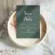 Diese tropische grüne Hochzeit speichern das Datum ist perfekt für eine Hochzeit in Urlaubsort.