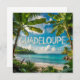 Entdecken Sie diese wunderschöne aquarelle Illustration von Guadeloupe, die die luxuriöse Schönheit der Insel einfangen. Design zeigt vibrierende tropische Landschaften mit riesigen Palmen, luxuriösen Bananenblättern, einem feinen Sandstrand, einem leuchtenden türkischen Meer und grünen Bergen im Hintergrund. Das Wort 'GUADELOUPE' wird in weißen Buchstaben mit einer Taste von Erinnerungen an die klassische Reise hervorgehoben. Perfekt für Naturliebhaber, Reisende oder Menschen, die von der Karibik träumen. Ideal, um Plakate, T-Shirts, Taschen, Tassen oder Postkarten zu personalisieren. Bringen Sie Ihrem Alltag eine Taste tropischer Flucht.