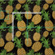 Mittleres Mittel- Ananasmuster auf einem Hintergrund des dunklen Schwarzen, in einem durcheinandergebrachten gelegentlichen Muster mit einem subtilen Vintagen gewaschenen gealterten Effekt. Leckere und köstliche natürliche Frucht, die in einem gefrorenen tropischen Getränk groß ist oder als Baum auf dem Strand. Erhalten Sie mit diesem coolen Inselerholungsort-Themagewebe festlich. Groß, damit den Strand oder der Ozeanliebhaber wie viel Sie Liebe das Küstenufer zeigt! Drucken Sie Hintergrund mit braunem und grünem Ananasmuster. Schaffen Sie ein hawaiisches Kleider- oder Zusatzeinzelteil des Nähens oder des Handwerks.
