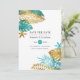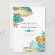 Tropische Hochzeit mit aquamarinen und goldenen Fo Save The Date