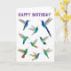 Glückliche Geburtstagskarte für Kolibri-Liebhaber mit mehreren tropischen Kolibris, wie zum Beispiel einen Saphir-beleidigten Hummingbird, von Fiery getragene Hummingvögel, Golden-Schwanz-Saphire und schwindgeschwänzte Hummingvögel. Bilder von originalen Aquarellbildern von Christiane Dobbins. Die Innenseite wird für Ihre eigene handgeschriebene Nachricht leer verlassen.