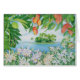 Wasserfarbe von tropischer Insel mit Mangos, Kakao, Brotfrüchten und Orchideen.