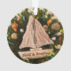 Weihnachten am Meer! Fügen Sie dieses atemberaubende, an der Küste inspiriert Akrylorschmuck zu Ihren tropischen Themenferien hinzu. Das Foto auf dem Ornament ist mit einem Kranz mit Seestern, Muscheln, Korbkugeln, Obst und einem Segelboot geschmückt. Die Farbpalette ist in braunen und bräunlichen Erdtönen gehalten. Der Text lautet: "SEAS & Greetings", kann aber ohne Aufpreis zur Anpassung bearbeitet werden. Die Rückseite des Ornaments ist identisch mit der Vorderseite. Das Ornament kann an Bäumen, Kränzen oder Garnelen aufgehängt werden, die für Krawatte, Handwerksprojekte oder für Taschen und kleine Geschenke verwendet werden. Fotografie und Design von Glenda Motsavage, einer in Florida ansässigen Reiseschriftstellerin und Autorin. Bild aus Orlando Museum of Art, Festival of Trees.