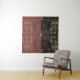 Alte Welt europäisch, exotisch und dunkel, mit einem leichten Geschmack des Orients, das schöne, originelle Muster von ZoeSPEAK, in natürlichen Farben auf diesem Wandteppich, wurde aus einem Originalfoto von Schmiedeeisen Latticework und tropischen Druckstoffen hergestellt. Palmfronten und andere tropische Blätter, in blassfarbenen Grüntönen, Terrakotta und Beige, Erholung anmutig auf schwarzem Hintergrund hinter dem Gitterwerk. Das Design ist im Stil eines Kupplungssacks oder einer Handtasche, mit einem Blumenmedallion-Knopfverschluss auf dunklem Hintergrund, glatter Stoffklappe über einem verblassten bordeauxfarbenen Gewebe des gleichen Musters. Die Klappe ist mit einem lachsfarbenen Kornbänder überzogen.