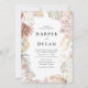 Elegante, moderne, tropische Hochzeitsfeiern, die Ihre Hochzeitsdetails gerahmt durch einen Rahmen von Aquarellfarben und tropischem Blattwerk in erdigen Rosa-, Bräunungs-, Beige-, Rost-, Braun-, Salbei- und Dunkelgrün-Tönen vermitteln. Die tropischen Hochzeitseinladungen kehren zu einem schlauen, grünen Aquarell zurück.