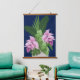 Tropische Medinilla Pink-Blume auf Dunkelblau Wandteppich Mit Holzrahmen