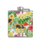 Tropische Michfrüchte, Blume und Blätter in Weiß Flachmann