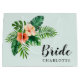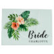 Elegantes Geschenksack-Design für die Braut, mit tropischen Aquarellfarben Blätter und Blume auf einem minzgrünen Hintergrund.