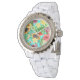 Tropische Mischfrüchte, Blume und Blätter auf blau Armbanduhr