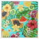 Tropische Mischfrüchte, Blume und Blätter auf blau Fliese
