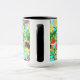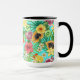 Tropische Mischfrüchte, Blume und Blätter auf blau Tasse