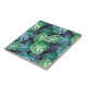 Farbenfrohe tropische Tracera-Monstera-Blätter in Aquarellfarbe auf dunkelblauem Hintergrund.