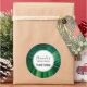 Kerzen- oder Seifenaufkleber mit einem Foto aus einem grünen tropischen Blatt, das einige lebendige Palmenfronten zeigt. Ein weißer Kreis, oben mit dem Text, der sich darin befindet.