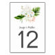 Tropische tropische Orchideen in Weiß und Rosa, Magnolien, weiße Königsproteas und dunkelgrüne Tischnummern. Bitte beachten Sie: Sie müssen diese Karten einzeln erstellen und einzeln in Ihren Warenkorb aufnehmen.
