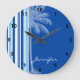 Tropische Palme; Blaue u. weiße Streifen Große Wanduhr