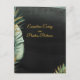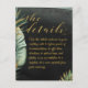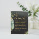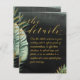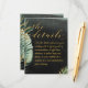 Eine Details Umschließungskarte, wenn Sie neben Ihrer Hochzeitseinladung weitere Informationen benötigen. Eine elegante Aquarellmalerei mit tropischer Hochzeitseinladung mit einem dramatischen, schwarzen Aquarellwaschbecken mit exquisit bemalten grünen Palmen-Blätter und schimmernden Goldakzenten. Eine lebendige Goldswash-Skript-Kalligraphie kündigt Ihre Hochzeitsdetails an.