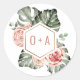 Tropische Palme und Rose Hochzeitmonographie Runder Aufkleber