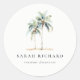 Tropische Palmen an der Küste Wasserfarbe Blau Grü Runder Aufkleber