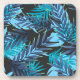 Der harte Kunststoff-Untersetzer wird in einem schönen blauen, mehrfarbigen tropischen Palmenprint gezeigt. Passen Sie dieses Objekt an oder kaufen Sie, wie es ist.