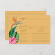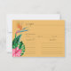 Diese farbenfrohe tropische Blumen und tropische Farbe Hintergrund Brautdusche Einladung. Das Design besticht durch ein elegantes Bouquet mit klassischen Strandfarben und Blume, darunter rosafarbener Hibiskus, orangefarbene und blaue Paradiesvögel, grüne Vegetation und dunkelgrünes Palmenblatt.