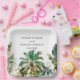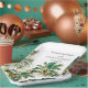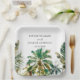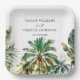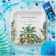 Diese elegante und schöne Hochzeitsplatte in Aquarelltönen mit tropischen Palmen. Der Text kombiniert handgeschriebene Skripte mit serifenlosen Schriftart für ein stilvolles und modernes Design. Dies ist ideal für einen Sommerstrand oder eine tropische Hochzeit in Urlaubsort.