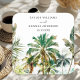 Dieser elegante und wunderschöne Untersetzer mit Wasserfarben und tropischen Palmen. Der Text kombiniert handgeschriebene Skripte mit serifenlosen Schriftart für ein stilvolles und modernes Design. Dies ist ideal für einen Sommerstrand oder eine tropische Hochzeit in Urlaubsort.