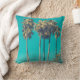 Ein Kissen mit einem schönen Foto. Große Palmen mit langen schmalen Stämmen vor einem schönen grünen Himmel. Retro-Farbschema. Entspannen und kühlen.