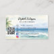 Ein tropischer Strand mit Wasserfarben und Palmen. Personalisieren Sie Ihren Namen auf der Vorderseite und fügen Sie ihn hinzu. Zurück: Vorlagen für Ihren Namen, Titel, Telefonnummer, E-Mail und Website-Adresse, QR-Code. Facebook- und Instagram-Symbole. Ideal für Unternehmerinnen, Berater, Geschäftsinhaber.
