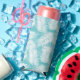 Dosenkühler wird in einem tropischen Palmendruck angezeigt. Color Aqua Passen Sie dieses Element an und fügen Sie es hinzu oder kaufen Sie, wie es ist. Börsenbild vecteezy.com