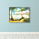 Palmen und ein warmer Sand und ein menschenleerer Strand ... Diese helle und fröhliche gewickelte Leinwand würde besonders fantastisch aussehen, im Spielzimmer oder in der Cabana. Original ist ein zeichnend Farbstift. Künstler: jeanne rene ... Jeanne ist ein Künstler aus der California Bay Area