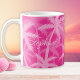Diese moderne trendige Tasse besticht durch ein tropisches Palmendesign in warmen Rosa-, Magenta- und Fuchsientönen. Personalisieren Sie die Skripttypografie mit Ihrem Namen oder Monogramm.