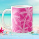 Tropische Palmenbäume, Mit Monogramm, heiß rosa Kaffeetasse