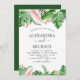 Tropische Palmenblütenfarbe Grün Rosa Hochzeit Einladung