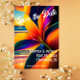 Die wunderschöne Ankündigung Datum freihalten Postkarte zeichnet sich durch einen kühlen, hellen, tropischen Blumendruck und einen kunstvollen Druck der Strandsonnenuntergänge aus | AI schuf surreale Fantasie digitale Kunst.