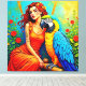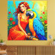 Tropische Schönheit und blauer Papagei Leinwanddruck