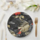 Tropische Schwarz & Gold-Verlass und Rote Blume Pappteller