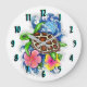 Tropische Seeschildkröte-und -Hibiskus-Blumen Große Wanduhr