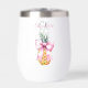 Ein stilvoller weißer Hintergrund mit rosa Bug und Ananas. Personalisieren und fügen Sie einen Namen und Ihre Monogramm-Initialen hinzu.