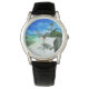 Uhr, Klassische Damenuhr mit schwarzen Lederarmband
