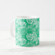 Diese Keramik Kaffee-Tasse wird in einem hübschen tropischen Palmenprint gezeigt. Passen Sie dieses Objekt an oder kaufen Sie, wie es ist.
