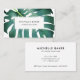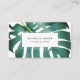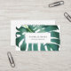 Elegantes und modernes Visitenkarten-Design mit Illustration eines grünen Monsterablattes auf dem Hintergrund.