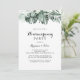 Diese Party Einladung mit tropischer Vegetation und blühender ist perfekt für ein rustikales Ereignis. Die Einrichtung besteht aus grünen Palmenbouquets mit hübschen weißen Blume.