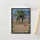 Palmenbaum, mit Weihnachtsdekorationen am Sandstrand verziert. Worte "Glückliche Weihnachten" geschrieben im Sand. Weitere Artikel mit diesem Design: www.zazzle.com/aura2000/tropical+xmas