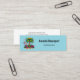 Mini Visitenkarten mit einem saisonalen Urlaubsbild. Eine tropische Palme, die mit festlichen Lichtern dekoriert ist und auf der ein Stern steht. Ein riesiger, rot-weißer Bonbons, der aus dem Sand ragt. Weihnachten präsentiert sich unter dem Baum. Whimsical und lustig.
