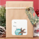 Tropische Weihnachtsgeschenk-Tag-Aufkleber. Starfish und Ornament, blau und braun, auf einem runden, weißen Aufkleber. Der schwarze "für" und "aus" Text kann geändert oder gelöscht werden. Wählen Sie einen Aufkleber der Größe aus.