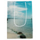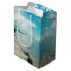 Starfish und Ornament, "Frohe Weihnachten" Geschenktasche, oder ändern Sie die Formulierung für jeden Anlass während der Ferien. Das Hintergrundbild umhüllt die Tasche und ist mein eigenes Foto einer Salzwasserlagune in Florida. Das Design wird nicht auf die größte Geschenktasche übertragen.